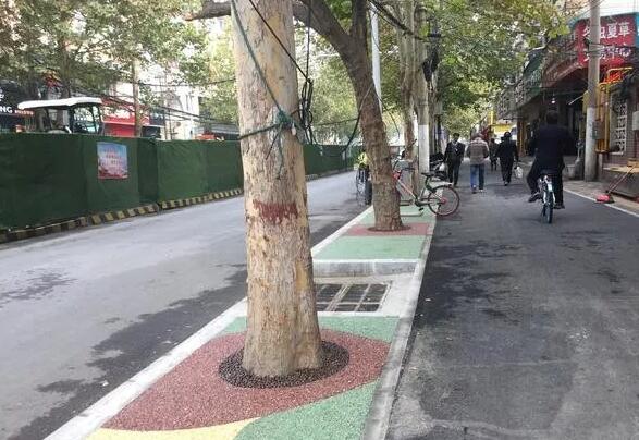 鄭州街頭綠化樹下鋪上新型的透水混合材料 2018-11-09