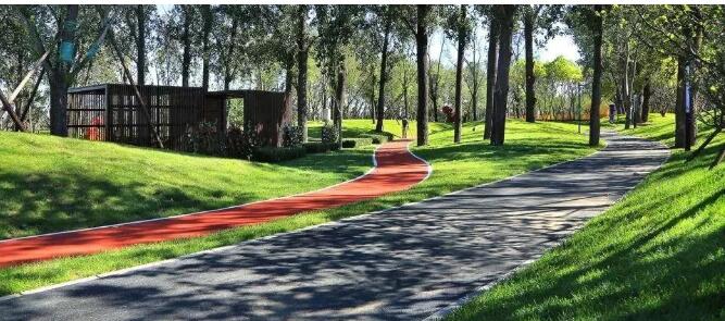 公園中設(shè)計了2.5 m寬的瀝青道路和1.5 m寬的塑膠跑道兩種路線,