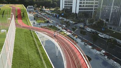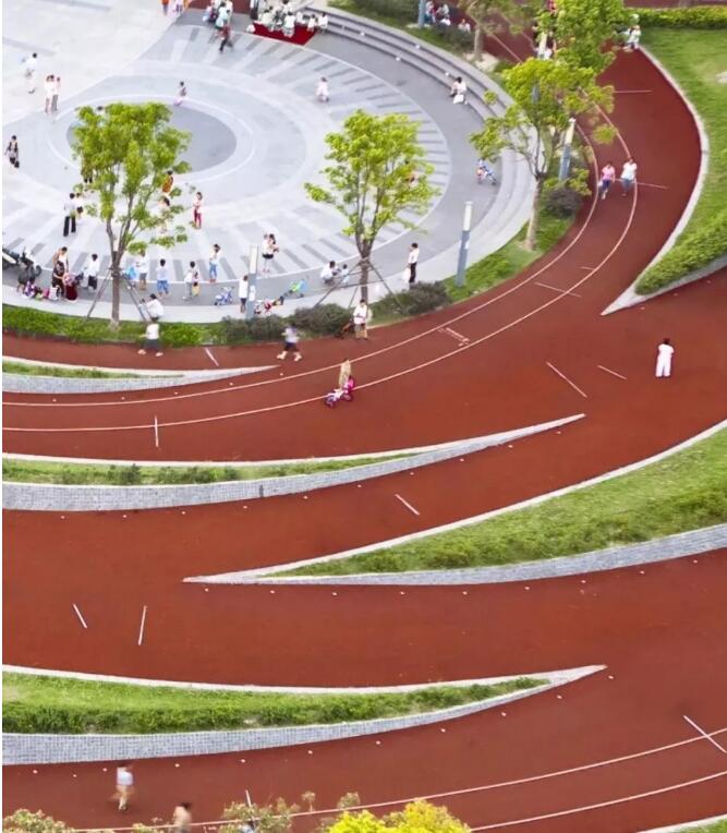 塑造了一個集跑道、廣場、綠化景觀為一體的生態(tài)系統(tǒng)。