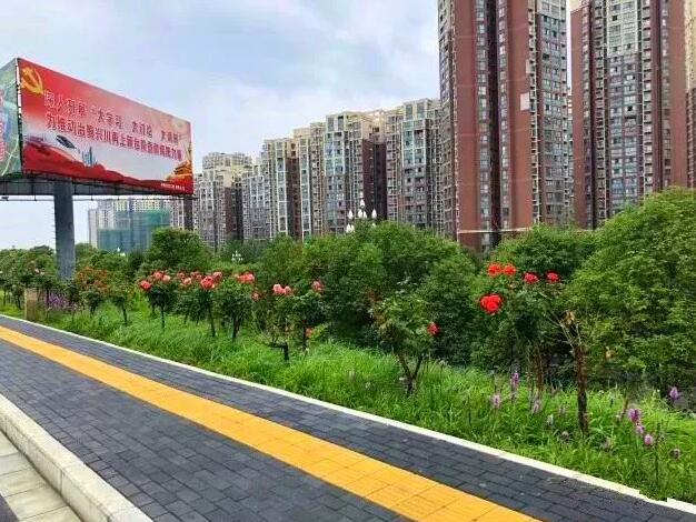 道路綠化進(jìn)行改造提升,補(bǔ)種行道樹(shù)、修剪綠化帶,利用現(xiàn)有地勢(shì),打造桂花游園、臘梅游園。