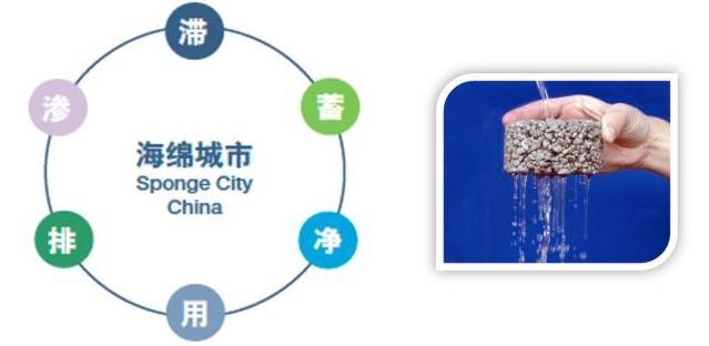 透水混凝土鋪裝是海綿城市建設(shè)不可或缺的手段,作為源頭徑流控制設(shè)施之一,能夠?qū)崿F(xiàn)海綿城市建設(shè)六大實施措施和手段中的滲、滯、蓄、凈、排五項功能。