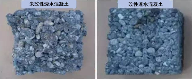 透水混凝土(孔隙率為15-25%)采用接近均一粒徑的粗骨料——膠凝材料集中分布于骨料表面和接觸點;聚合物膜均勻地分布在水化產(chǎn)物和骨料之間,與水泥的剛性粘結(jié)一起協(xié)同提高體系的穩(wěn)定性。