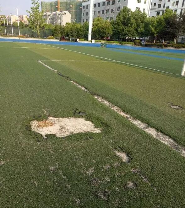 記者發(fā)現(xiàn),原本平坦的人工草地和塑膠跑道均出現(xiàn)了不同程度的塑膠斷裂、脫層,坑坑洼洼、凹凸不平的現(xiàn)象嚴(yán)重。市民廖先生不滿地說:“我每天晚上都要鍛煉身體,幾乎每次都能看到穿高跟鞋的、溜寵物的,還有的小孩也沒人看管,追追打打,零食、垃圾扔得到處都是。坐草地上玩的也很多,有時(shí)候足球隊(duì)都沒法訓(xùn)練,這公共設(shè)施都沒法發(fā)揮應(yīng)有的作用就被破壞了,有點(diǎn)可惜。”