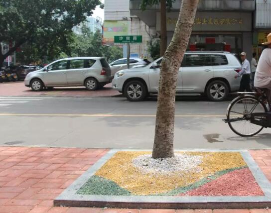 中間白色圓形,周邊是黃色、綠色及紅色流線型圖案,這不是什么藝術(shù)畫,而是在沙墩路的一處樹池。7月27日,記者從端州區(qū)園林綠化管理中心處了解到,城區(qū)已有600多個(gè)樹池鋪裝了透水混凝土。