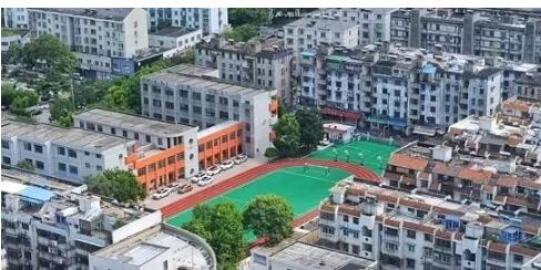 浙江嘉興市輔成小學(xué)低段部,整修一新的塑膠操場(chǎng)在老城區(qū)中格外引人注目。