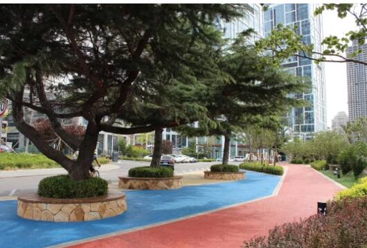 公園建設(shè)遵循“海綿城市”建設(shè)理念,園內(nèi)跑步路徑、休閑活動區(qū)、觀景平臺等硬鋪裝區(qū)域均采用透水混凝土材質(zhì),充分發(fā)揮園區(qū)內(nèi)路徑、廣場對雨水的吸納、蓄滲和緩釋作用,有效控制雨水徑流,形成自然積存、自然滲透、自然凈化的“海綿路面”。