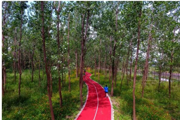 千畝港健身步道配套有千畝港公園,沿著河道兩邊建設(shè)5公里步行道,公園里多為喬木、灌木、草等植物的有機(jī)結(jié)合方式,形成錯(cuò)落有致、四季分明的景觀效果。