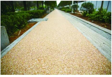 聚氨酯碎石混合料是一種新型路面材料,不僅生態(tài)環(huán)保,還能將天然色的碎石粘結(jié)成極其堅固穩(wěn)定的開放性孔隙結(jié)構(gòu),具有開孔的表面及相互連接的內(nèi)部孔洞,其吸水性極強,下雨天不會一踩一腳水。