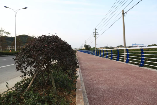 據(jù)工程負(fù)責(zé)人介紹,龍山景觀大道透水地坪采用BSF透水材料建成,擁有15%-25%的孔隙,可達(dá)到31-52升/平米/小時(shí)的透水速度,即使在雨天,路面也不會積水。景觀大道透水地坪與塑膠跑道的質(zhì)感類似,不管是散步跑步都很舒適,在鍛煉的同時(shí)還能領(lǐng)略路邊農(nóng)田的風(fēng)景。