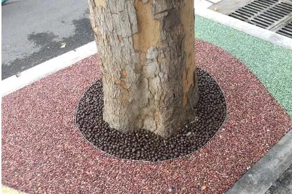 鄭州街頭綠化樹下鋪上新型的透水混合材料