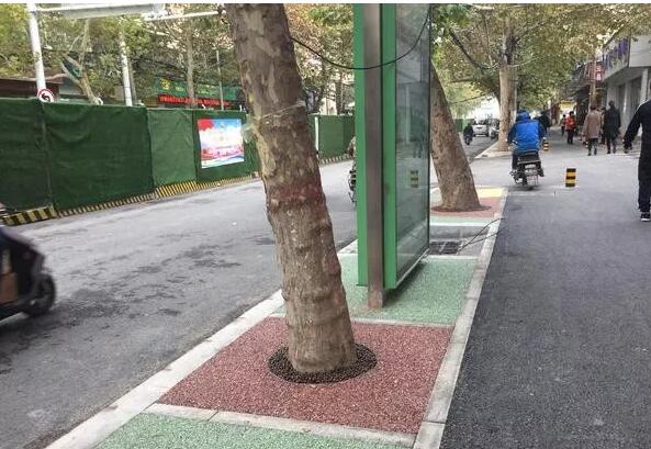 “綠化樹周圍硬化了,色彩斑斕,非常好看,但綠化樹下也鋪上了一圈瀝青,會(huì)不會(huì)影響大樹吸收水分?“王女士說(shuō),她擔(dān)心樹根周圍被鋪設(shè)的是一圈瀝青,沒有裸露泥土,綠化樹無(wú)法吸收水分從而枯死,或者受瀝青影響,影響綠化樹的健康。