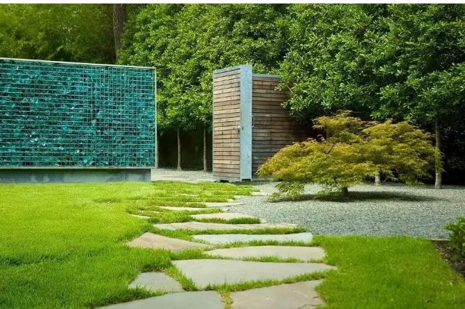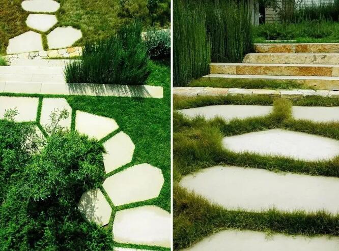 把天然或各種形式的預制混凝土塊鋪成冰裂紋或其他花紋,鋪筑時在塊料間留3~5cm的縫隙,填入培養(yǎng)土,然后種草。如:冰裂紋嵌草路、花崗巖石板嵌草路、木紋混凝土嵌草路、梅花形混凝土嵌草路。
