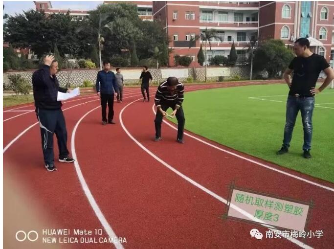 梅嶺助學(xué)助困協(xié)會(huì)對(duì)塑膠跑道進(jìn)行驗(yàn)收!