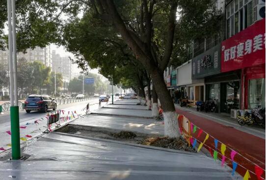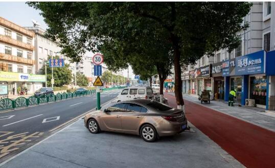 小編在現(xiàn)場看到,改造工程將原來的非機動車道及側分帶拆除,改成斜向停車位,這樣的設計既美觀又便于車輛出入。