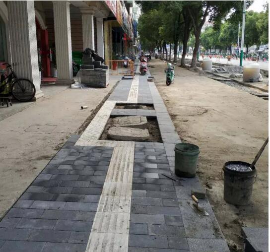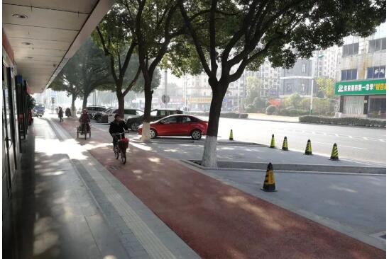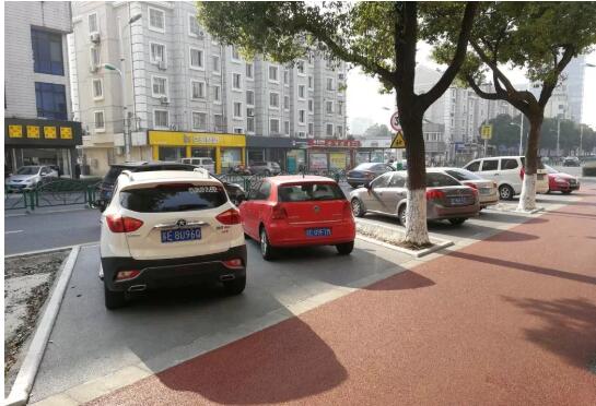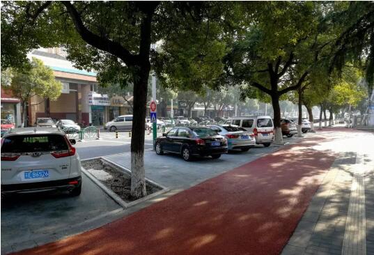 目前道路沿線有條件增設停車位的地方都已經改造一新,改造停車位400余個。停車位路面根據(jù)不同功能分別鋪設了透水粒子、水泥磚、草坪磚等;非機動車道鋪設了彩色瀝青。