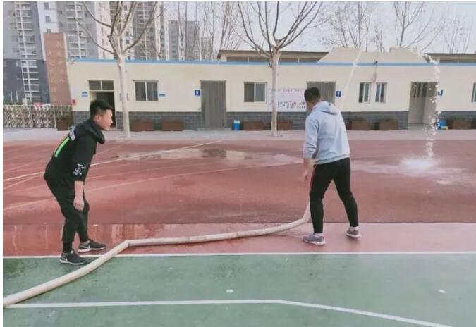 天色逐漸暗下來了,清洗跑道工作也接近尾聲。整潔的校園,干凈的跑道,正在靜靜地迎接著新一天的到來!