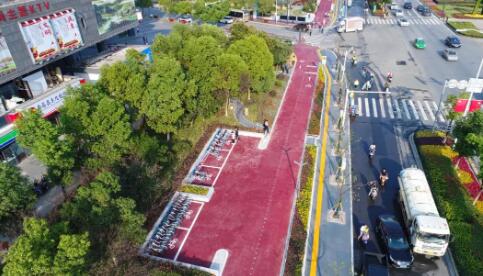 南昌高新區(qū)綠道的建設(shè)遵循以人為本、經(jīng)濟(jì)環(huán)保、因地制宜、疊加組合的設(shè)計(jì)理念,路線規(guī)劃串聯(lián)起城區(qū)各類公共空間資源,就近聯(lián)系各級(jí)城鄉(xiāng)居民點(diǎn),將陳舊老化的人行道和非機(jī)動(dòng)車道升級(jí)為彩色透水混凝土鋪裝的“海綿道路”,形成騎行愛好者和徒步愛好者各得其所的騎行道、漫步道和騎行步行綜合道。