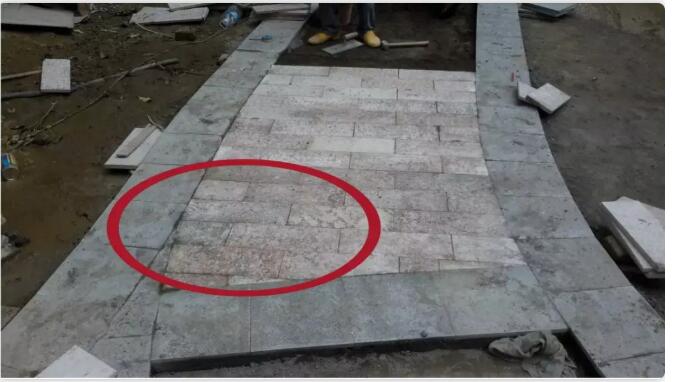 3. 石材必須在鋪設前清水潤濕,防止石材將結合層水泥砂漿的水分吸收,也可順便洗掉石材上的灰塵,保證粘貼牢固。