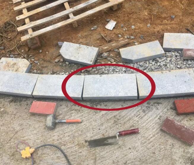 5. 石材鋪裝時應大小搭配,縫寬以10mm為宜,用水泥油回縫,縫應比石材面低2-3mm。
