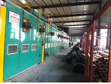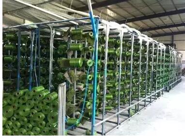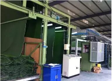 沒錯(cuò),就是這些織布機(jī)一樣的家伙,將一個(gè)個(gè)沙頭穿好,然后織好,那么最后一幅圖上的設(shè)備是做什么用的呢?長(zhǎng)見識(shí)的機(jī)會(huì)來了,這叫做烘干機(jī),草坪織好后,背面要涂背膠,背膠涂好后,需要烘干。