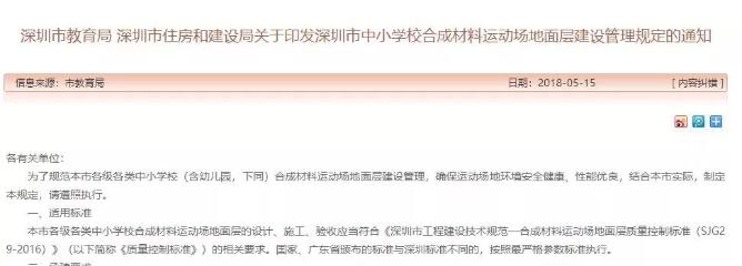 關(guān)于印發(fā)深圳市中小學(xué)校合成材料運(yùn)動(dòng)場地面層建設(shè)管理規(guī)定的通知