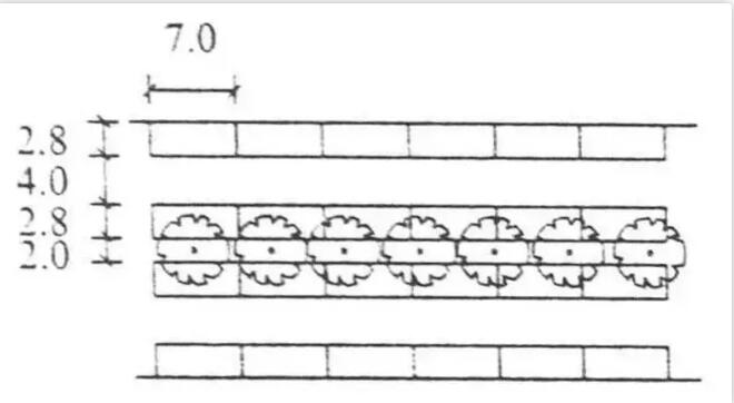 其樹木枝下高度應(yīng)符合停車位凈高度的規(guī)定:小型汽車為2.5m;中型汽車為3.5m ;載貨汽車為4.5m ,但不宜布置花卉。