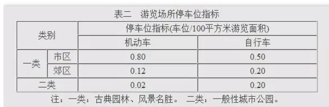 根據(jù)以下表格的數(shù)據(jù)計算出:在市區(qū)的景區(qū): N=AA*0.80/100;在郊區(qū)的景區(qū):N=AA*0.12/100;城市公園的 : N=AA*0.02/100;其中:N—景區(qū)車位數(shù);AA—景區(qū)占地面積。