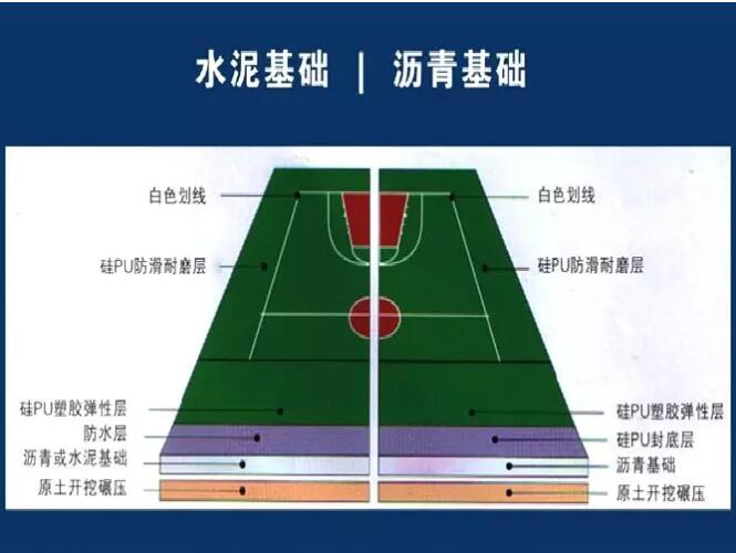 ■ 硅PU球場(chǎng):適用于籃球、羽毛球、乒乓球、排球、室內(nèi)足球、手球、幼兒園、健身房、醫(yī)院、賓館等室內(nèi)外場(chǎng)地,可直接在水泥混凝土上鋪設(shè),一般能使用8年以上。