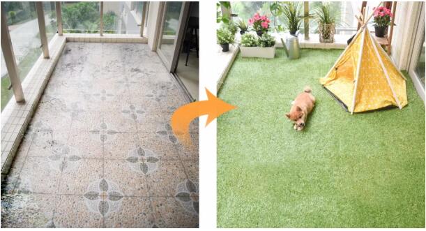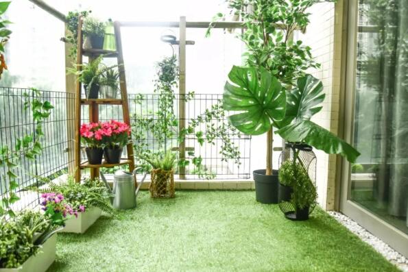 也不少人會選擇仿真草坪裝飾陽臺