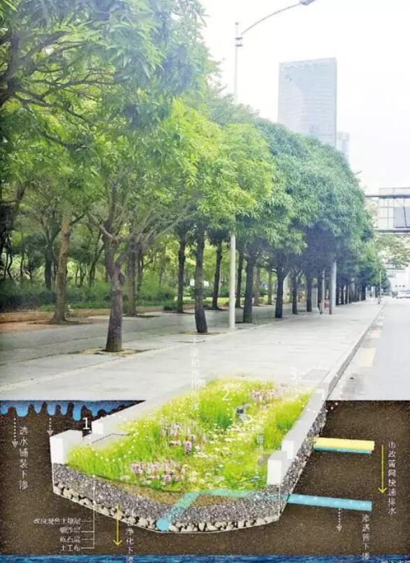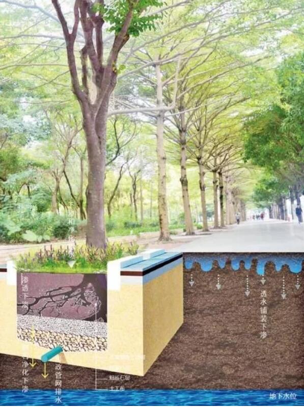 海綿城市,指城市能夠像海綿一樣,在適應(yīng)環(huán)境變化和應(yīng)對自然災(zāi)害等方面具有良好的“彈性”,下雨時吸水、蓄水、滲水、凈水,需要時將蓄存的水“釋放”并加以利用。海綿城市建設(shè)遵循生態(tài)優(yōu)先等原則,將自然途徑與人工措施相結(jié)合,在確保城市排水防澇安全的前提下,最大限度地實現(xiàn)雨水在城市區(qū)域的積存、滲透和凈化,促進雨水資源的利用和生態(tài)環(huán)境保護。