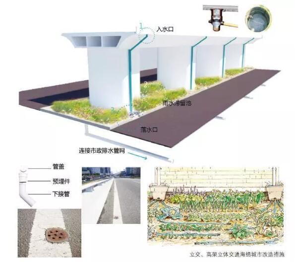 采用入水口初期棄流、入水口攔截裝置、高架下滯留池設(shè)計等方式。