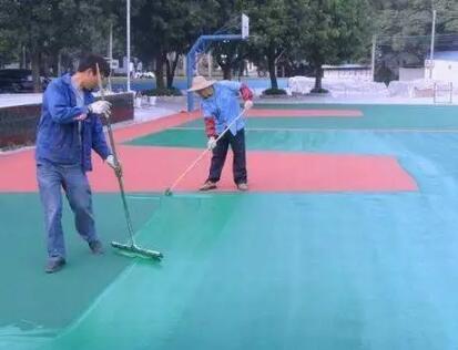 硅PU工程面層為雙組份材料,必須按規(guī)定比例把A、B兩組份充分攪拌均勻,可加入少量水調節(jié)合適施工稠度,用膠刮板分2~3道刮涂于加強層表面。表面需粗糙的可以加入≤30%面層專用砂,應先將A組份與專用砂攪拌均勻再加入B組充分混合均勻后刮涂。(各類球場面層參考做法:乒乓球、籃球場:第一道加入30%專用砂,第二道加入15%專用砂,第三道不加專用砂;網(wǎng)球場:加入30%專用砂分2~3道刮涂。羽毛球、排球場:不加專用砂分2~3道刮涂。)面層施工用料必須足量,否則會直接影響使用效果及使用期限。應避免烈日及表面溫度過高情況下施工,保證表面效果。