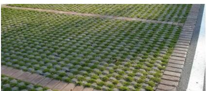 以干硬性混凝土為主要原料,采用二次布料成型技術(shù),經(jīng)壓制而成,鋪裝時(shí)可實(shí)現(xiàn)四角互鎖,或具有球面承壓凸臺(tái)。除了磚體的豎向開(kāi)孔結(jié)構(gòu)形成路面雨水下滲的主要通道外,磚體混凝土自身也具有一定的透水能力,透水率≥1.0×10-2cm/s(試驗(yàn)方法GB/T 25993)。植草磚基體混凝土可使用部分固廢材料生產(chǎn)。產(chǎn)品相關(guān)技術(shù)性能指標(biāo)應(yīng)符合NY/T 1253《植草磚》標(biāo)準(zhǔn)要求。
