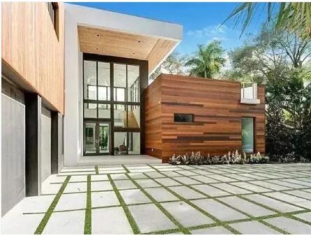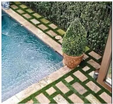 鋪裝之間,留有一定寬度的縫隙,再于其間種植草坪,具有滲透性的同時,也為庭院增加了一抹綠色。