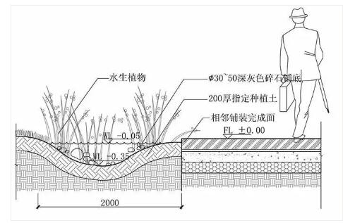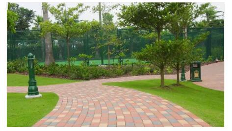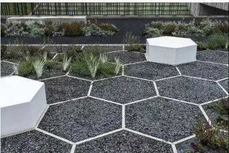 (4)用細(xì)碎石或細(xì)鵝卵石,地面僅由大小均勻的石子散落鋪成,地面透水性好,不長草。
