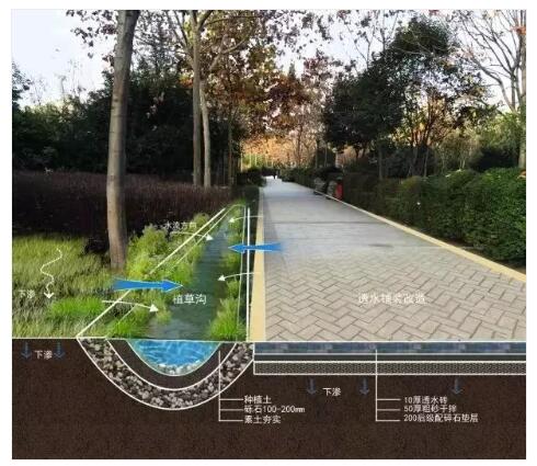 滲透雨水溝可以對鋪裝面多余的雨水進(jìn)行收集下滲