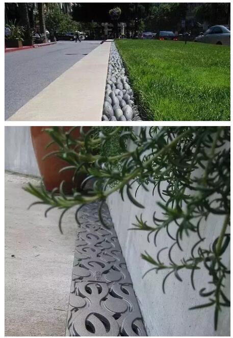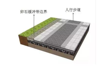 卵石緩沖帶不但為雨水進(jìn)入綠地提供過濾緩沖效果,而且使道路更加美觀。