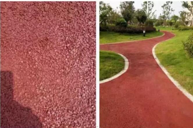 (3)工程檢測(cè)及驗(yàn)收:工程結(jié)束后對(duì)混凝土路面進(jìn)行了透水性驗(yàn)收,驗(yàn)收結(jié)果表明透水系數(shù)良好。對(duì)所留置的試塊和現(xiàn)場(chǎng)鉆芯試塊進(jìn)行了試壓,均達(dá)到了設(shè)計(jì)要求,工程竣工使用四年,反映效果及使用功能良好。圖 2 為彩色透水混凝土路面的應(yīng)用效果圖。