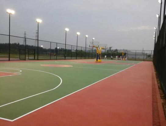 第五步:刮彈性層:硅PU彈性層開桶后,加入約一紙杯水(150-300g)攪拌均勻,用稀釋劑調整材料的稀稠度,用專用工具均勻刮涂在場地上,第一遍固化后再施工第二遍或第三遍,每遍施工最好不超過2MM,同時須在第一遍施工完成后須找平場地積水。