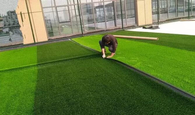 清理草皮上的雜物,檢查場地平整度,如發(fā)現(xiàn)有褶皺,則可用美工刀切開,裁剪多余的部分,再重新粘接。