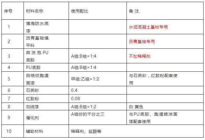 發(fā)泡自結紋塑膠跑道材料使用配比