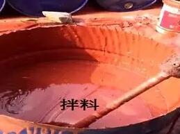 嚴格工藝配方進行配比,配比系數為甲組份:乙組份=1:4(重量比)。配料順序:甲組份→乙組份→攪拌均勻,攪拌桶的容量應是攪拌量的 1.5-2倍,使用前攪拌桶保持干燥及清潔。