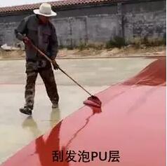 為了增長發(fā)泡層的使用壽命,在發(fā)泡層固化之后,要在發(fā)泡層表面攤鋪1-2㎜厚的1:4底膠加強層。
