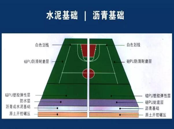 硅PU球場:適用于籃球、羽毛球、乒乓球、排球、室內(nèi)足球、手球、幼兒園、健身房、醫(yī)院、賓館等室內(nèi)外場地,可直接在水泥混凝土上鋪設(shè),一般能使用8年以上。