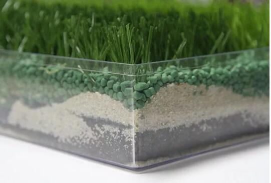 人造草坪是不具有任何土壤的,適當(dāng)填充石英砂和橡膠顆??梢詫?duì)草絲進(jìn)行固定作用,沒(méi)有石英砂的保護(hù),人造草在足球這種高強(qiáng)度的運(yùn)動(dòng)下很快就會(huì)脫落和磨損,所以填充適量的石英砂必不可少。如果按照FIFA標(biāo)準(zhǔn)進(jìn)行填充的話以50mm草高為例,一般填充14-16目橡膠顆粒6KG,40-60目石英砂25KG為最佳。填充高度在35mm為最佳。
